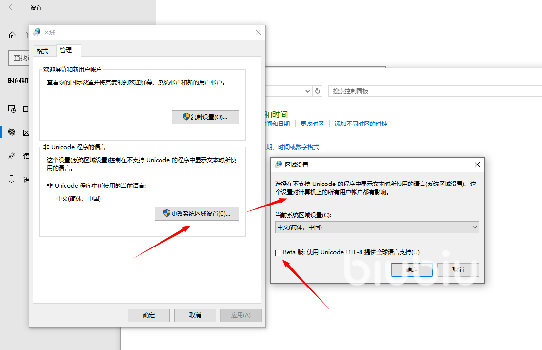 當(dāng)然還有一種情況,是有些用戶遇到初始化停滯或安裝過程中持續(xù)轉(zhuǎn)圈問題,這里有一個(gè)簡(jiǎn)單的系統(tǒng)設(shè)置調(diào)整方法。在Windows 10或Windows 11系統(tǒng)中,打開控制面板或者設(shè)置,找到“時(shí)鐘和區(qū)域”。在“區(qū)域”中,找到“其他日期、時(shí)間和區(qū)域設(shè)置”下的“更改日期、時(shí)間或數(shù)字格式”。這里選擇“管理”選項(xiàng)卡,然后點(diǎn)擊“更改系統(tǒng)區(qū)域設(shè)置”。在彈出的窗口中,勾選“Beta版:使用Unicode UTF-8提供全球語(yǔ)言支持”,點(diǎn)擊確定后重啟電腦。這樣基本上能解決卡頓問題了。