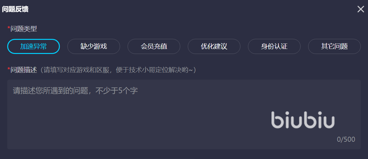 此外你還可以登錄biubiu加速器關(guān)注你喜歡游戲?qū)鐓^(qū),這里會有很多的伙伴分享個人通關(guān)心得和經(jīng)驗,你們可以相互的溝通學習。在使用的過程中出現(xiàn)任何的問題都可以咨詢在線的客服,也可以通過問題反饋界面提交相信的問題內(nèi)容,待專業(yè)人士收到之后會立即為你解決。