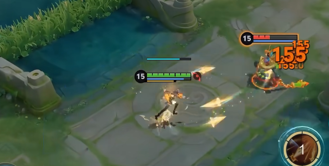 攻戰(zhàn)形態(tài)下,1技能有點(diǎn)像孫策的技能1,不過距離會更遠(yuǎn),沖刺一段距離能對終點(diǎn)的地方擊飛,并造成傷害;2技能可對前方橫掃,同時回復(fù)血量,整體技能效果實(shí)戰(zhàn)非常不錯。