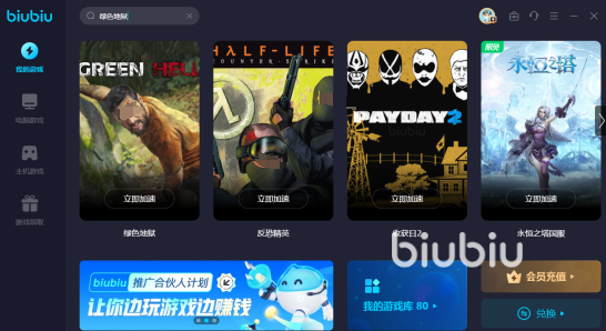 再來(lái)給大家介紹一下如今這款加速器所推出的活動(dòng),它是每個(gè)游戲玩家都可參與的,新用戶(hù)注冊(cè)登錄以后,可以享受免費(fèi)對(duì)游戲加速24小時(shí)。新老用戶(hù)還可通過(guò)兌換碼福利享受對(duì)游戲免費(fèi)加速三天,這樣新用戶(hù)只要能正確領(lǐng)取的話(huà),一共可免費(fèi)加速96個(gè)小時(shí)兌換碼福利,只要正確輸入兌換碼【biubiu不卡頓】就可以了。