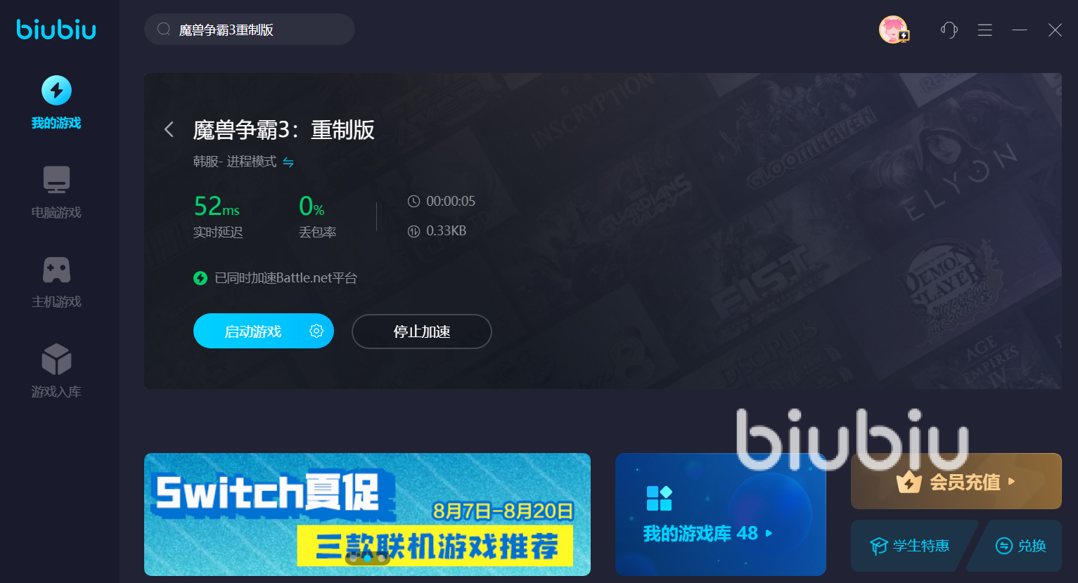 來源: 極光 作者: 澈 2023年08月16日 16:10魔獸爭(zhēng)霸三重制版是對(duì)以前魔獸爭(zhēng)霸三游戲進(jìn)行的重制,優(yōu)化了很多的地圖,而且還推出了一些新的角色。有小伙伴想知道魔獸爭(zhēng)霸3重制版閃退怎么辦?對(duì)于一個(gè)老牌的大廠推出的經(jīng)典游戲重制,無數(shù)玩家都抱著很大的期待,畢竟將游戲進(jìn)行重制就是要讓這種老的游戲變得與時(shí)俱進(jìn),將畫面和模型都進(jìn)行優(yōu)化,畢竟能夠做出重制版的游戲一般都是很受玩家歡迎的。biubiu加速器就是一款可以解決魔獸爭(zhēng)霸三重制版閃退問題。