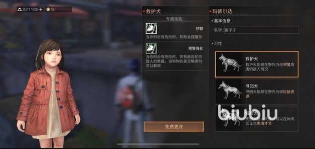經(jīng)過一段時間的訓(xùn)練,你還可以獲得寵物狗技能,前往“快樂101”那里可以修改狗狗的性格,如果你愿意的話。三種職業(yè)的狗哪個最好呢?我們權(quán)且來看看他們的能力。救護狗可以為你提供預(yù)警,培養(yǎng)起來之甚至可以主動出擊,如果你不想受到未知不明的襲擊,那么帶個的救護狗就挺不錯。