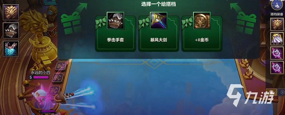 同時在二杠四和二杠五這個兩個回合開始前,會出現(xiàn)三個隨機(jī)的基礎(chǔ)裝備,你們需要在其中選擇一個,而被選中的裝備會直接傳送到隊友的備戰(zhàn)席上。