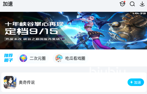 首先,玩家需要先下載并安裝biubiu加速器,在biubiu加速器當(dāng)中,找到奧奇?zhèn)髡f這款游戲,點(diǎn)擊這款游戲右側(cè)的下載選項(xiàng),就可以開始下載這款游戲了。