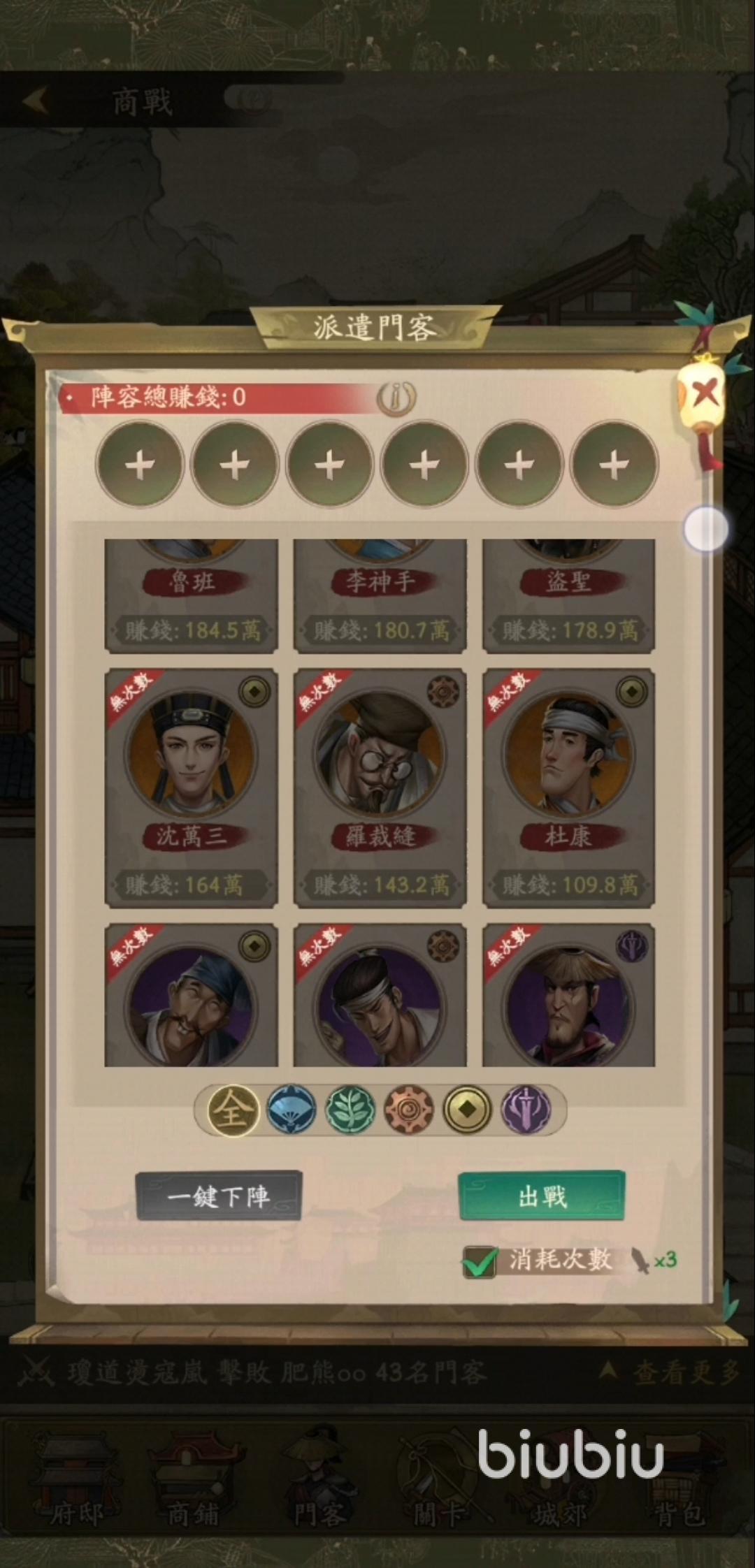 5、我們應(yīng)該先將高品質(zhì)門客突破并提升等級(jí),合理分配資源將其他品質(zhì)門客按梯隊(duì)培養(yǎng)是一個(gè)很好的提升方法。