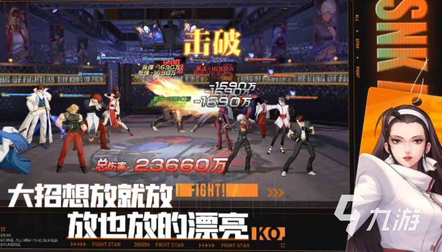 游戲完美復(fù)刻了拳皇系列的各個(gè)角色,并且運(yùn)用現(xiàn)代化的技術(shù)和手段對人物的外觀方面進(jìn)行了細(xì)節(jié)優(yōu)化,建模的更新,更是對于游戲本身角色技能的釋放、特效的細(xì)節(jié)做了優(yōu)化,玩家不僅可以體驗(yàn)到原汁原味的格斗快感,還可以欣賞到游戲制作商對于人物立繪方面的投入!另外,游戲?yàn)榱私o廣大玩家?guī)碜罟降挠螒蝮w驗(yàn),更是不定時(shí)會(huì)推出多項(xiàng)免費(fèi)的活動(dòng),讓每個(gè)人都能玩到自己喜歡的角色!
