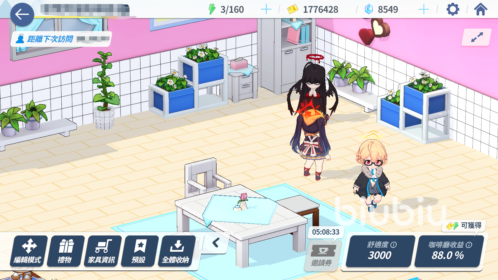 2、體力和信用點數(shù)可獲取的數(shù)量是根據(jù)咖啡廳的舒適度來增加的。因此如果想要得到更多的獎勵,那么請大家盡可能提升咖啡廳的舒適度吧。
