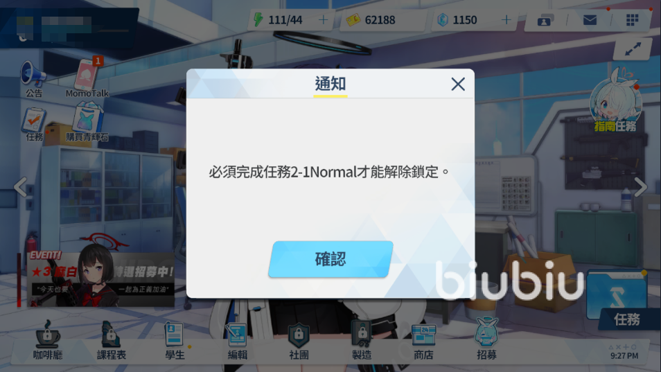 2、需要注意的一點是,只有玩家的主線劇情通關(guān)到(2—1)關(guān)才能解鎖咖啡廳玩法,在此之前是無法進(jìn)入的。