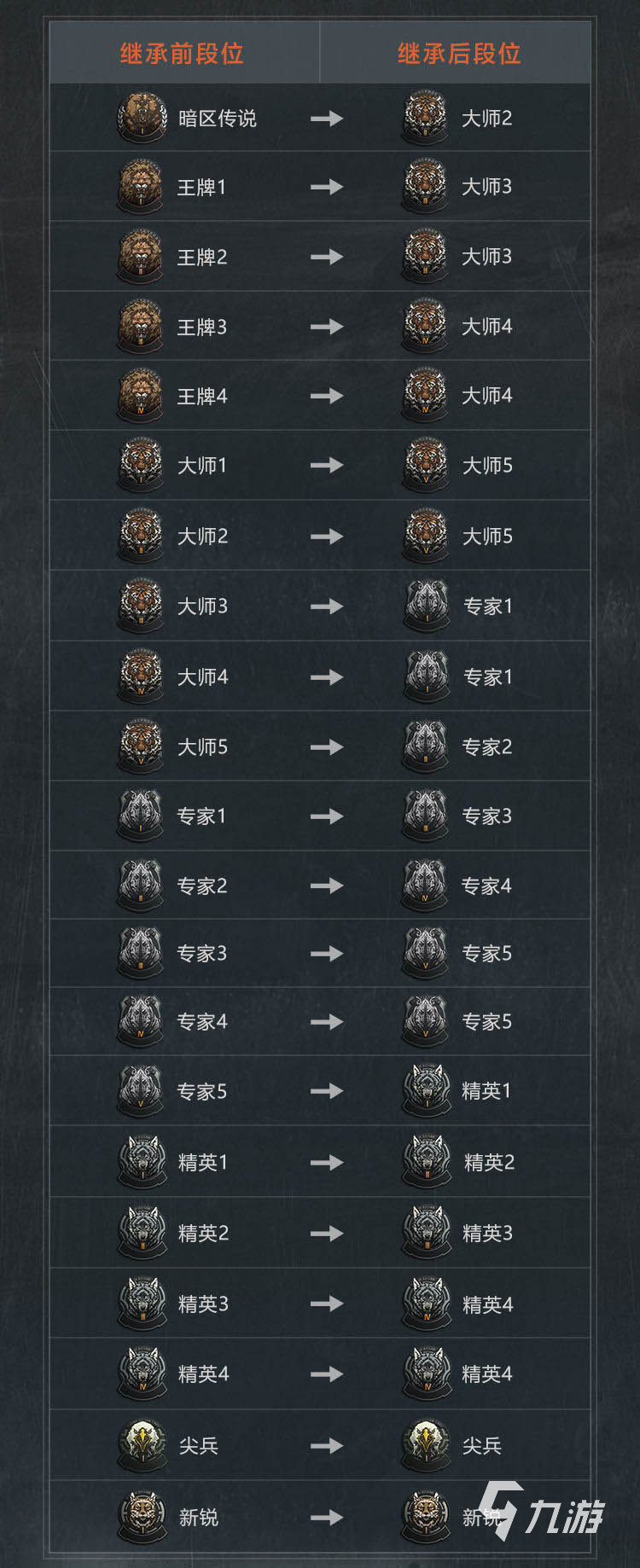 此外,既有賽季,肯定就有段位繼承,而其段位繼承的具體規(guī)則是下面這樣的: