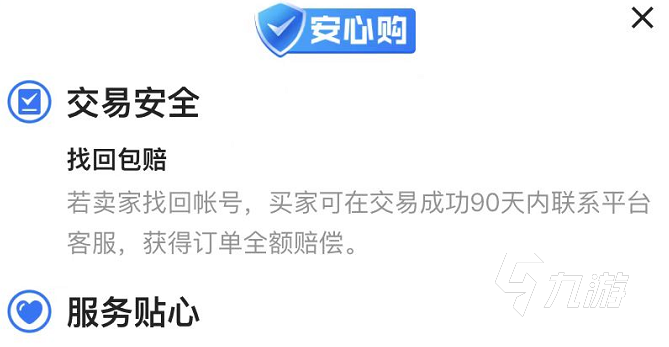 另外,即便交易結(jié)束了,事后賬號(hào)有任何問(wèn)題,也可以連接售后客服進(jìn)行處理,平臺(tái)還推出了安心購(gòu)的功能,能為更多的玩家延長(zhǎng)保障時(shí)間,確認(rèn)收貨的90天之內(nèi),賬號(hào)有任何問(wèn)題,平臺(tái)也會(huì)直接為玩家進(jìn)行處理,此外,交易貓內(nèi)還擁有代練以及道具板塊,可以幫助玩家更快的成長(zhǎng),滿(mǎn)足我們的所有線(xiàn)上游戲交易需求哦。