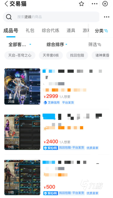 對于想要購買賬號的玩家來說,直接在交易貓的首頁搜索逆戰(zhàn)就可以看到當下被上架的商品了,大部分都是以成品號的形式出現(xiàn)在大家的眼前,當然搜索出來的商品價格都是不一樣的,面對詳情頁的資源內(nèi)容不同,檔位就會有差別。
