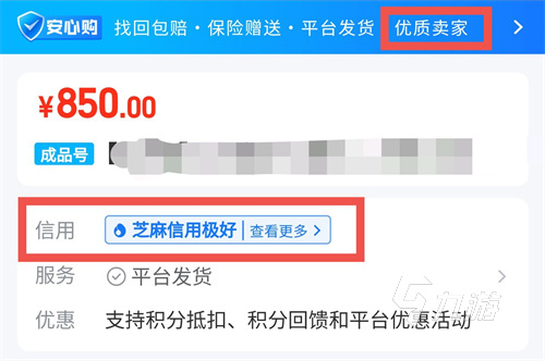 通過下圖玩家就能發(fā)現(xiàn),平臺里面的各方面服務展示是很全面的,其中就有優(yōu)質(zhì)賣家,以及安心購和部分商品承諾的找回包賠,這些標識,玩家能一眼看到,同時還有芝麻信用的授權綁定,這些也是非常具備權威性的,賣家在此類信息齊全的情況下,往往都是不用在擔心賬號的出售問題。