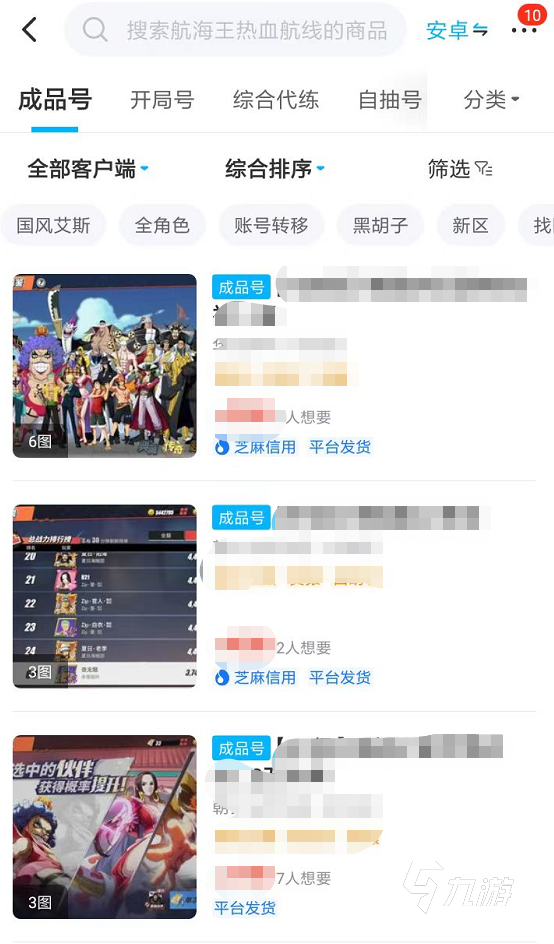航海王熱血航線不同類型的游戲賬號當中,最值得玩家們?nèi)ベ徺I的賬號類型主要就是成品號,這類游戲賬號往往解鎖了大量的角色,并且擁有高強的戰(zhàn)斗能力,非常適合進入到各大副本當中進行刷圖。那么小編為了幫助大家更安全的去購買這類游戲號,推薦大家直接進入到交易貓app當中進行。