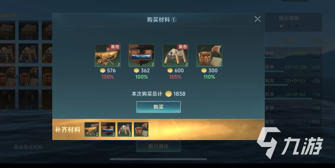 接下來(lái)就需要第二次強(qiáng)化, 二次強(qiáng)化所需要的材料是強(qiáng)化版材料,如果只是普通材料的話那么船只的星級(jí)還是停留在c級(jí),而這次的材料是比較龐大的,首先就是船的模型,船的尾巴以及涂料以及帆船的頂部,這些材料的品質(zhì)都需要在綠色品質(zhì)以上,然后進(jìn)行升級(jí)就可以變到b級(jí)船只。