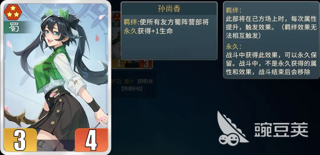 3、蜀卒:前期比較優(yōu)質(zhì)的過渡卡,2本準(zhǔn)時來可以拿到,配合張星彩、白毦兵使用初期戰(zhàn)斗力還是比較客觀的,后期陣容沒有完善志之前,給到關(guān)羽,張飛能吃屬性加成,觸發(fā)羈絆,配合白虎效果也還可以,是甘夫人的下位替代。