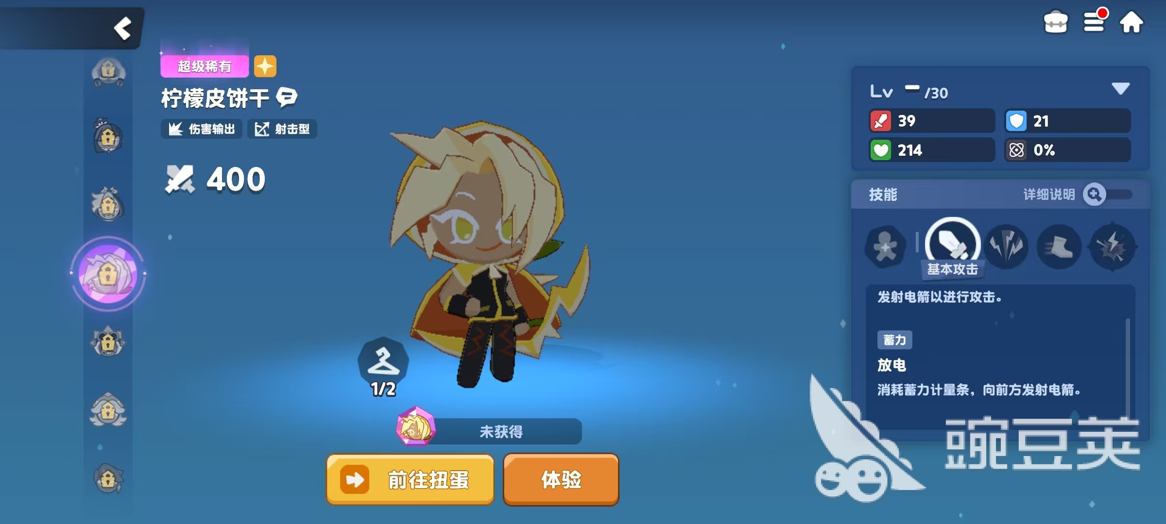 基本攻擊檸檬電流,使用魔術(shù)方塊發(fā)射鐳射光進(jìn)行攻擊。特殊技能閃電襲擊,按照順序依次打擊范圍內(nèi)的敵人。絕招魔術(shù)方塊沖擊波,召喚出檸檬糖魔術(shù)方塊,每次將魔術(shù)方塊拼好后,都能發(fā)射沖擊波,對(duì)范圍內(nèi)的敵人造成傷害,同時(shí)給周?chē)奈曳劫x予檸檬護(hù)盾和柑橘能量,在拼完三次魔術(shù)方塊后會(huì)引起爆炸,對(duì)范圍內(nèi)的敵人造成傷害。這個(gè)角色主要的作用就是利用自身的被動(dòng)或者是絕招,去給周?chē)砑幼o(hù)盾以及能量等狀態(tài)。因?yàn)樽陨砜梢詭?lái)光屬性輸出增加,所以最佳隊(duì)友就是那些光屬性的輸出型餅干人。