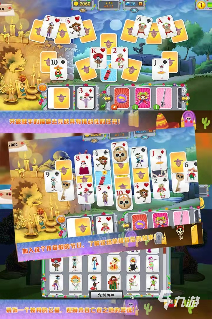亡靈節(jié)背景的紙牌小游戲,在游戲中的場景都是選擇了亡靈節(jié)的經(jīng)典圖畫,在游戲中就猶如踏上了異常全新的亡靈節(jié)冒險。除了紙牌玩法外,還有很多任務(wù)可以選擇,需要玩家突破棘手的障礙才能完成具有挑戰(zhàn)性的任務(wù),更加了解亡靈節(jié)這個節(jié)日。