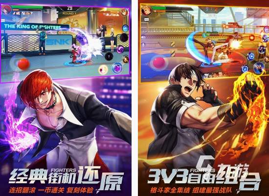 這款以拳皇中大家耳熟能詳?shù)慕巧?,正版授?quán)的動作游戲,除了支持1V1的對戰(zhàn)模式,還有3v3的多人對戰(zhàn)模式,呈現(xiàn)了街機(jī)闖關(guān)游戲,所帶來的緊張刺激感。需要每個玩家,在這里面選擇各種角色,與人氣也很高的戰(zhàn)斗家進(jìn)行較量,進(jìn)行公平競技模式。如果你也想要在每次展開動作體驗(yàn)的時候,成為最終的獲勝者,需要點(diǎn)擊屏幕,使角色做出各種炫酷的動作。