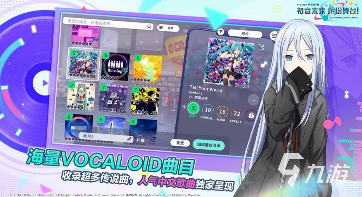 《初音未來繽紛舞臺》是一款二次元類的音樂游戲,游戲里面擁有著非常多的歌手角色,將在游戲里利用音樂進(jìn)行比賽。6名虛擬歌手各自都非常的有特色,游戲里面還可以創(chuàng)建私人房間邀請好友,一起觀看游戲中的角色表演??梢赃M(jìn)行歌曲的難度選擇,有適合新手玩家的,也有適合高級玩家的,上百首不同的中文歌曲可以去挑選,在演繹的過程中會(huì)有美妙的特效。