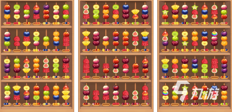 來(lái)串糖葫蘆主打的是非常有趣的排序玩法,游戲開始之后會(huì)有大量的糖葫蘆,玩家需要做的就是通過(guò)點(diǎn)擊的方式,把糖葫蘆上的這些水果進(jìn)行交換,每一個(gè)糖葫蘆下面都會(huì)有對(duì)照的參考,只有所有的糖葫蘆串,都達(dá)到要求之后才能順利通關(guān),畫面的設(shè)定非常精致,那玩家在游戲的過(guò)程中口水直流。