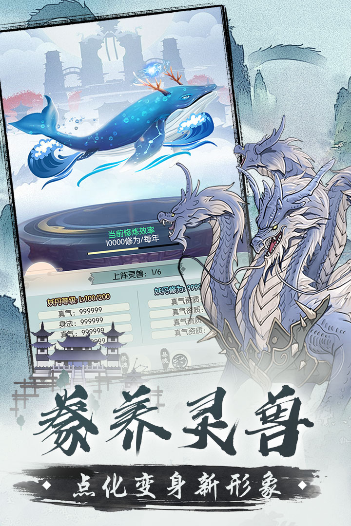 采用抽象式風(fēng)格的修煉游戲,游戲?qū)⒎胖?、文字、搞笑等元素融為一體,能夠帶給玩家放松的游戲體驗,同時自由的修煉路線給予了玩家多種玩法,適合在無聊時進行游玩。