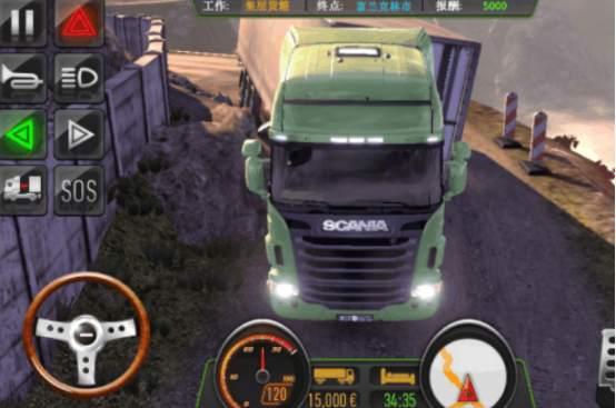 化身為卡車司機的你,需駕駛著較大的大卡車完成相應的運輸任務,當你成功領(lǐng)取了運輸任務后,就可到起始地將滿滿的貨物全部放入其中,用自己精美的駕駛技術(shù)完成相應的貨物運輸任務,只要將這些貨物平穩(wěn)的交付到雇主手中,即可獲得豐厚的獎勵。游戲的屏幕上都有相應的信息,比如車速以及導航等等,利用左右手相互配合的方式,成功駕駛大卡車,左邊有方向盤,右邊有油門剎車等。