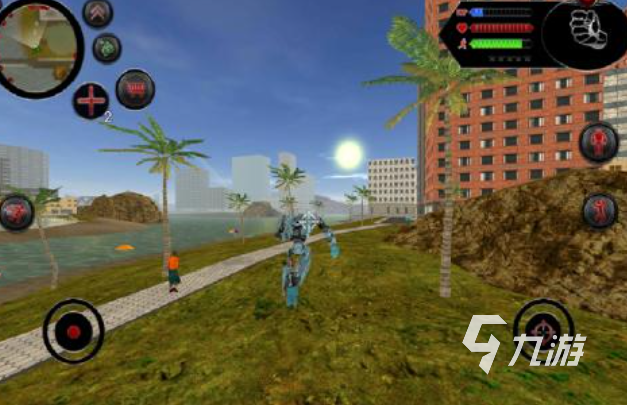 本作其實也是款具備變形金剛元素的單機機甲游戲,本作中的機器人可以變身為機器鯊快速移動,采用雙輪盤操控機制和開放巨大的世界觀,金鐵音效跟機器人主題的玩法交相呼應(yīng),海底世界跟城市的建模技術(shù)十分完善,小地圖也可以觀察敵人位置展開戰(zhàn)斗,機器鯊變身的動態(tài)效果看上去也十分霸氣。