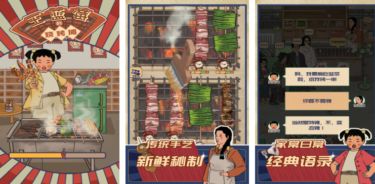 王藍莓的燒烤攤游戲中,以懷舊市井為背景,玩家經(jīng)營的不僅是燒烤攤,更是一段充滿煙火氣的時光記憶,游戲融合烹飪模擬與攤主人生雙線敘事,食材選購環(huán)節(jié)需在早市與海鮮市場間比價,新鮮度直接影響菜品評分,燒烤過程采用實時火候控制,羊肉串需翻面3次達到外焦里嫩,夜市事件系統(tǒng)會隨機觸發(fā)城管巡查、暴雨天氣等突發(fā)狀況,需快速調(diào)整經(jīng)營策略。