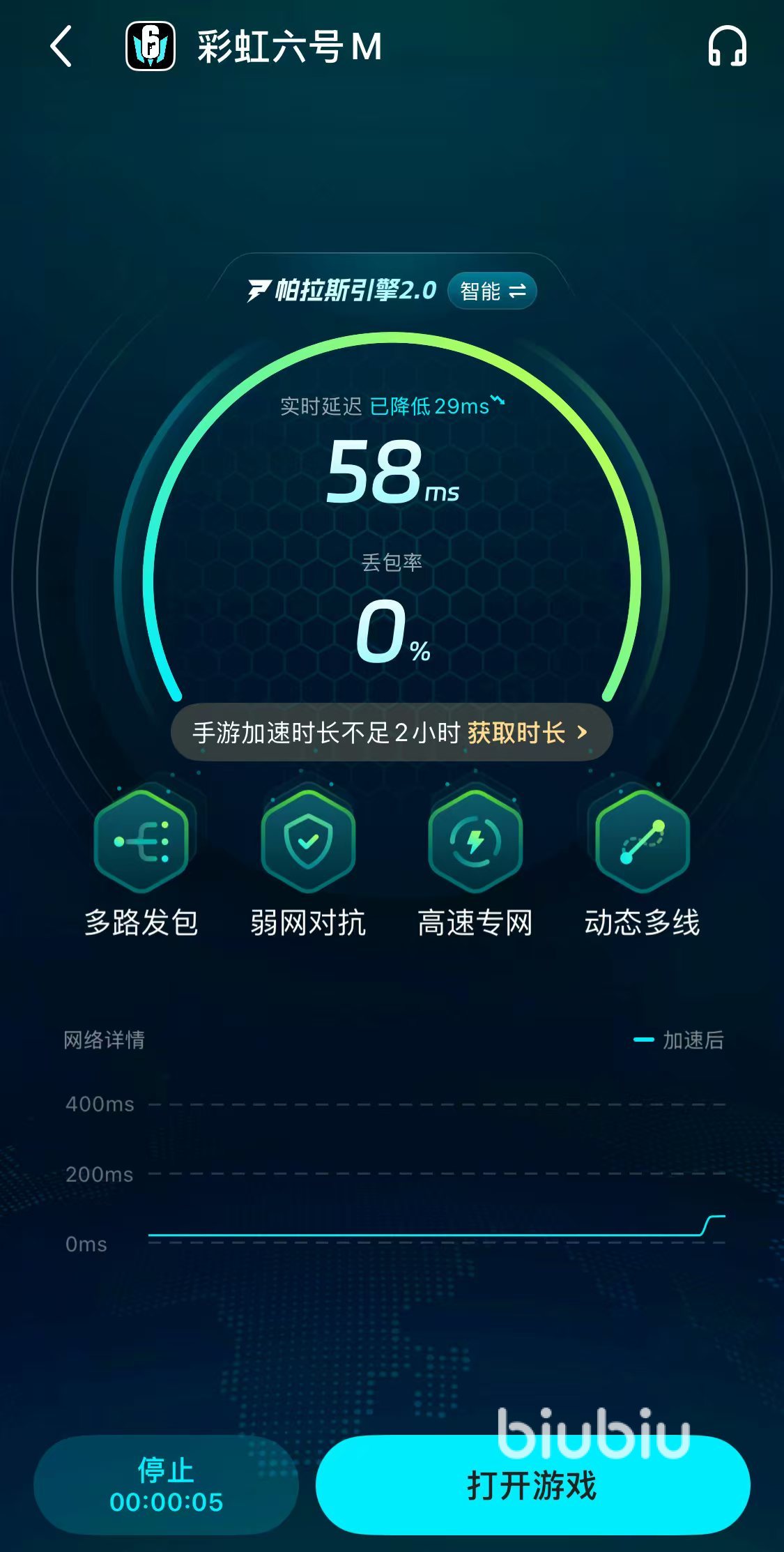 其次,網(wǎng)絡(luò)問題也是引起卡頓閃退的主要原因之一,尤其是在國(guó)際服中,跨服對(duì)戰(zhàn)的高延遲和丟包現(xiàn)象尤為明顯。為了獲取更好的體驗(yàn)感,可以選擇專業(yè)的游戲加速器,biubiu加速器能夠智能識(shí)別游戲數(shù)據(jù)包的優(yōu)先級(jí),為關(guān)鍵技能分配專線通道,確保數(shù)據(jù)傳輸?shù)姆€(wěn)定性和流暢性,從而避免因網(wǎng)絡(luò)問題導(dǎo)致的卡頓和閃退。