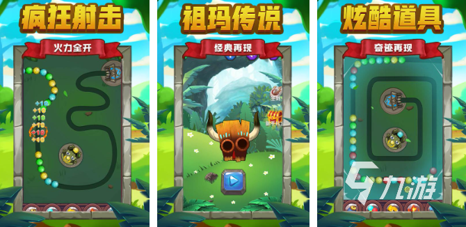 在這款超經(jīng)典的祖瑪手游中,你就可以找到兒時的樂趣了!游戲的玩法特別簡單,只需要點擊屏幕,就可以控制蟾蜍將嘴巴里面的彩色小球發(fā)射出去。如果在管道中有三個以上相同顏色的彩球相連,它們就會被消除掉,這樣我們就可以獲得分?jǐn)?shù)了!能否將所有的彩球都消除完,是你能否成功闖關(guān)的條件,碰到困難的時候不用怕,我們可以用一些神奇道具來幫助我們成功通關(guān),一次性消除多個彩球也是可以的哦!