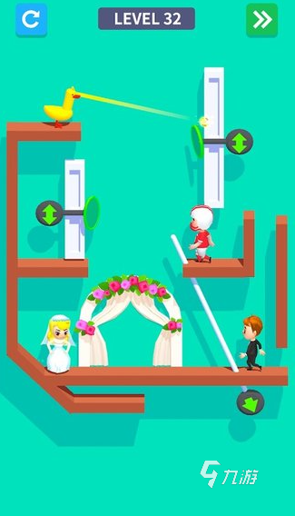 《結(jié)婚3D》這款作品在設(shè)計(jì)上有更巧妙的想法,玩家要在游戲里闖過(guò)一道道難關(guān),最后成功救出新娘,和她完成結(jié)婚。游戲的背景設(shè)定在婚房里,通過(guò)把各種物品搭起來(lái),做出了不少值得琢磨的機(jī)械謎題。每一關(guān)里都有一層又一層的障礙,擋住我們?nèi)ヒ?jiàn)新娘的路,要是想早點(diǎn)進(jìn)洞房,就趕緊拿出自己的智慧,去和新娘碰面吧。