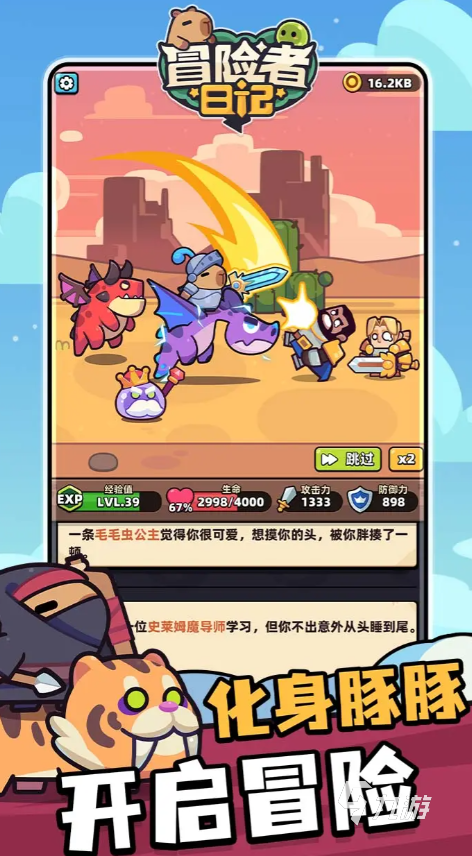 冒險除了歡笑外自然也伴隨著危險,碰到需要對戰(zhàn)的場景時,可以自由搭配裝備屬性,來一場熱血沸騰的戰(zhàn)斗,在不斷的戰(zhàn)斗力,還會提升角色的等級,解鎖出更強(qiáng)大的技能,讓自己一步步擁有強(qiáng)大的戰(zhàn)斗力。
