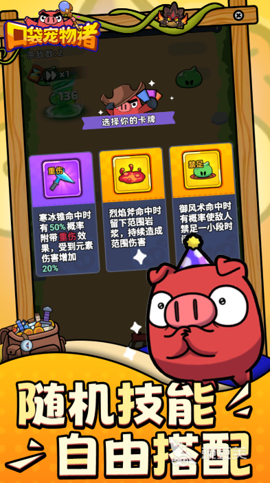 這款游戲讓你擁有一頭寵物豬,你和他會(huì)發(fā)生許多搞笑日常,你可以照顧他的吃喝拉撒,并培養(yǎng)他的能力,從而帶著他參加諸多賽事,與其他玩家的寵物豬進(jìn)行PK,看誰(shuí)鹿死誰(shuí)手。游戲的關(guān)卡也多,大家可以帶著小豬去殺骷髏兵,享受割草快感。游戲里,每次闖關(guān)后都可以三技能選其一,滿足大家的謀略需求。