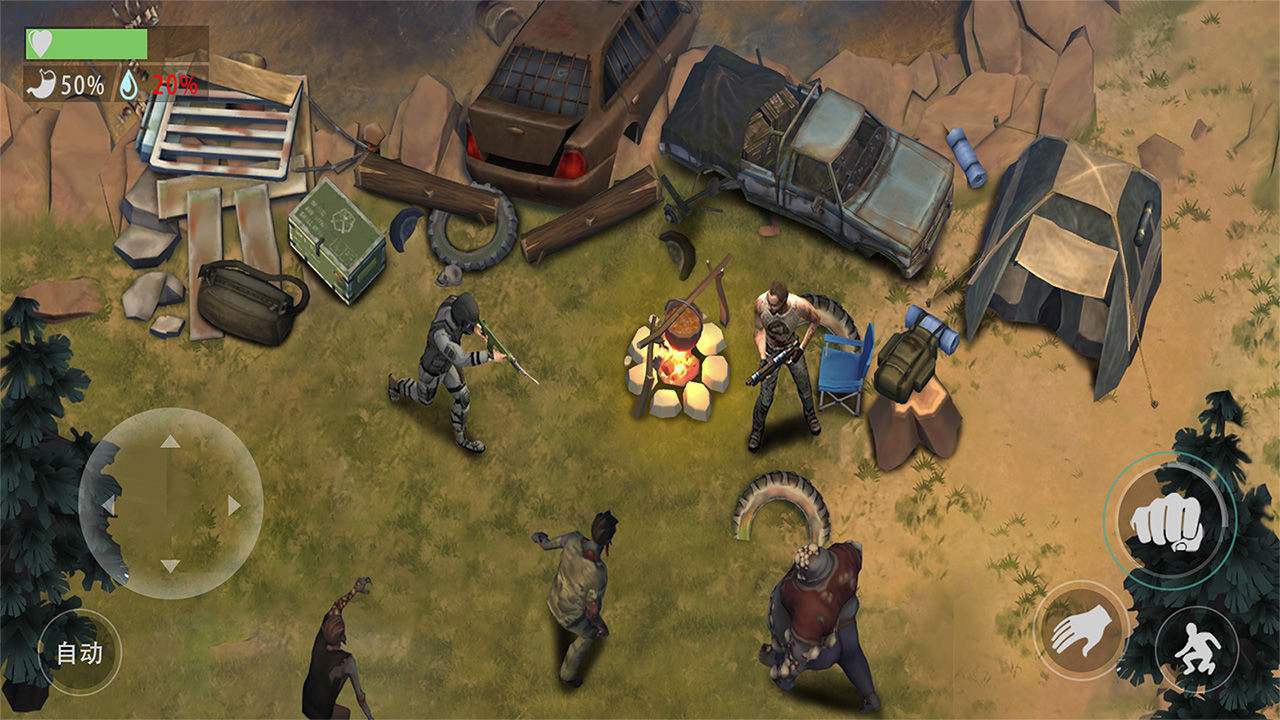 在游戲中僵尸會不停追趕玩家,只有找到庇護所才能保障安全。需要搜集各種材料和補給,而且還要擊退來犯的僵尸,努力升級營地,才能增加活下去的希望。畫面精美,玩法多變。